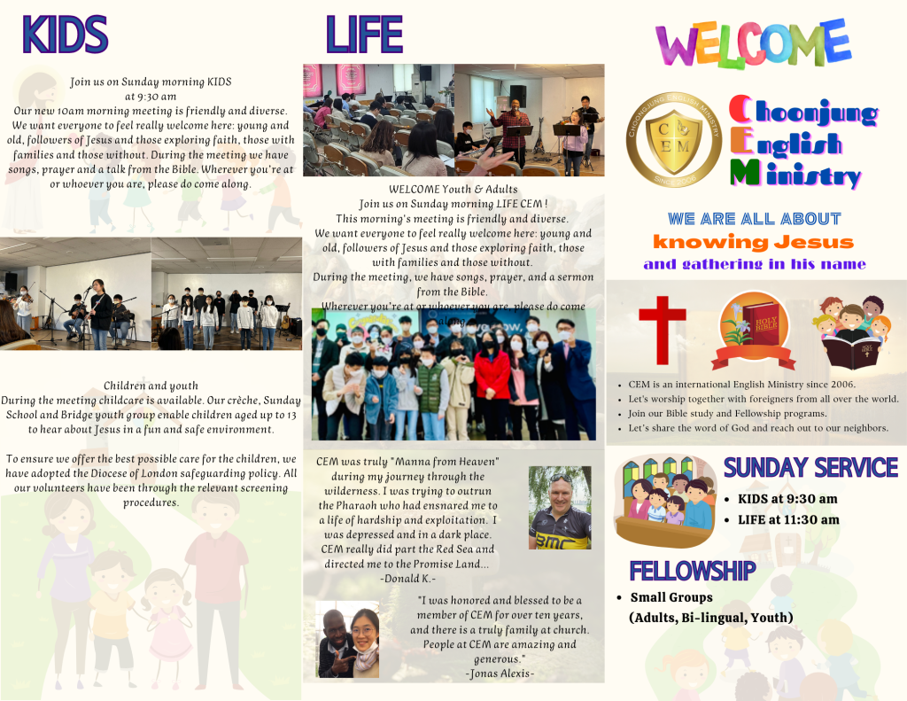 Information for CEM Good Information for CEM Term for Church NIV Bible Reading >> NKJV Bible Reading >> ESV Bible Reading >> WORSHIP SERVICE IN ENGLISH >> EXPLANATION OF A HYMN (Korean) >>